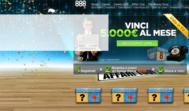 Ecco la nuovissima promozione di 888 per i giocatori del gioco Affari Tuoi, €5000 di bonus per 48 mesi ...